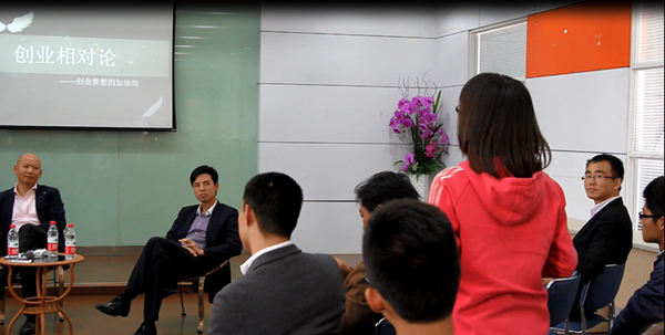“创业相对论”活动形式是主题沙龙交流,两位嘉宾先是谈了自己对创业的看法,在鼓励大学生勇敢尝试的同时,也严肃地指出创业要谨慎,尤其是袁岳老师“创业者要做野狗,不能做宠物狗”的比喻,引来一阵爆笑和思考。接下来更多的时间都是学生和嘉宾之间的问答,比如“什么是创业精神”“公益创业该怎么进行”“如何当好一个创业团队领导者”等问题,嘉宾都以幽默风趣的话语回答,既有趣又发人深思,袁岳老师还当场教给一个男生怎样“厚脸皮与人搭讪”的技巧,博得观众的阵阵掌声。