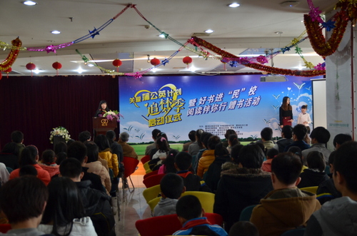 启动仪式上,团区委副书记陈启针对“关爱‘蒲公英’计划——追梦季”活动做了重点推介,本次“追梦季”系列活动针对鄞州区外来务工人员子女,以“我的美丽中国梦”为主题,开展“梦想,精彩我的人生”征文、演讲比赛、“学做新型小农民——农植物种植体验”、“好书进‘民’校,阅读伴你行”等十类活动。仪式上,区关工委等相关部门领导为在场外来务工人员子女赠送“追梦季”活动邀请卡和由孩子们自己挑选的“心愿图书”;来自浙江大学宁波理工学院土建学院的80名大学生青年公益志愿者同来自正腾、曙光、泰安、利民四所流动人口学校的孩子们进行结对,开展“结对一名孩子、进行一次家访、同读一本书、指导一篇作文、开展一次读书实践”读书伴行活动。