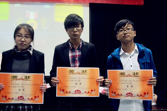 最终,经过评委们的讨论,传媒与设计学院广告122班赢得了本届传媒与设计学院、法律系新生辩论赛冠军,法学122、广告121分别获得亚、季军。此外,周佰霞、李世杰两位同学凭借他们在辩论赛中优异的表现荣获最佳辩手的称号。