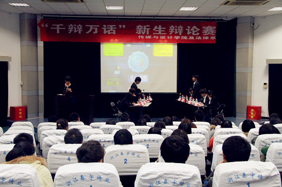2012年11月17日晚,传媒与设计学院、法律系“千辩万话”新生辩论赛决赛在NF103成功举行。参加本次决赛的是传媒与设计学院广告121、122班、新闻121班以及法律系法学122班。本次决赛特别邀请到了校队的教练、领队及各个学院辩论队的领队和资深辩手担任本次大赛的评委。