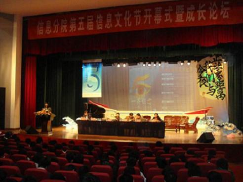 据悉第五届信息文化节是分院团委、学生会、社团联合会、青年志愿者协会联手为学生奉上了校园文化盛宴,以“一齐创意”为主题,分为携手创e、学术点击、青春e动、社青在线等五个篇章,涵盖“今夜,我们与企业零距离”主题成长论坛、创意设计大赛、创e讲堂、SRPIP第二期学生科研立项结题验收和SRPIP第三期学生科研立项申报、大学生数学建模大赛、“阳光学子”评选、师生运动会、十佳歌手大赛等十余个活动项目。